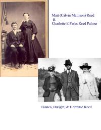 Calvin Mattison Reed was born circa 1840 Iowa.1 He was the son of Dr Calvin C Reed and Alvira Brown. Calvin and Charlotte Ellen Parks, daughter of George Ballard W. Parks and Cynthia Ann Richardson, were married 1 December 1868 Clark County, Washington.1,2 Calvin and Elsa Otis were married between 1878 and 1886. Calvin and Lena (--?--) were married circa 1886. Calvin Mattison Reed died before 25 November 1889, in Creswell, Lane County, Oregon.3